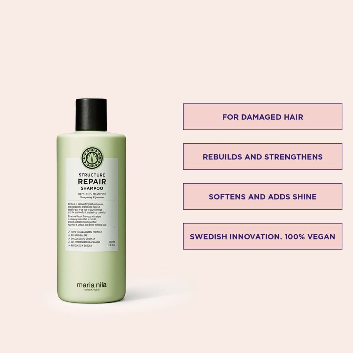 ¡Si quieres mejorar tu imagen y realzar la belleza de tu cabello, Champú Maria Nila STRUCTURE REPAIR 350 ml te será de gran ayuda para lograr tus objetivos! Disfruta de los beneficios y las ventajas de los productos Maria Nila y otros productos de peluquería de marcas 100 % originales.