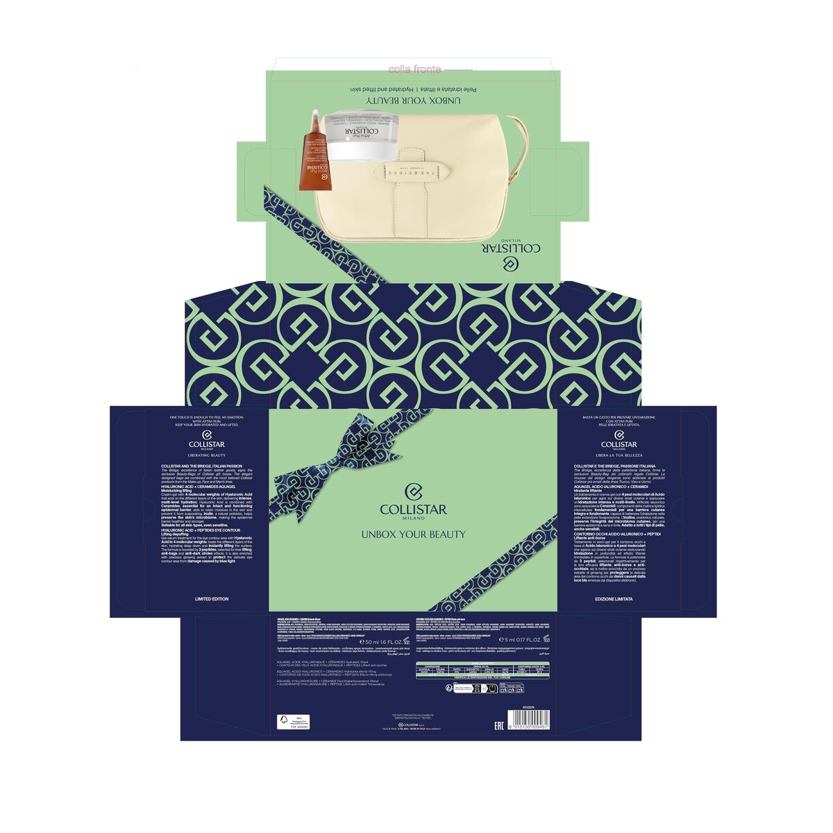Collistar Unbox Your Beauty. Adecuado para: Mujeres, Adecuado para los tipos de piel: Todo tipo de pieles, Efecto cuidado de la piel: Hidratante, Protección, Suavizar, Fortalecimiento. Cantidad por paquete: 3 pieza(s), Tipo de embalaje: Caja de regalo